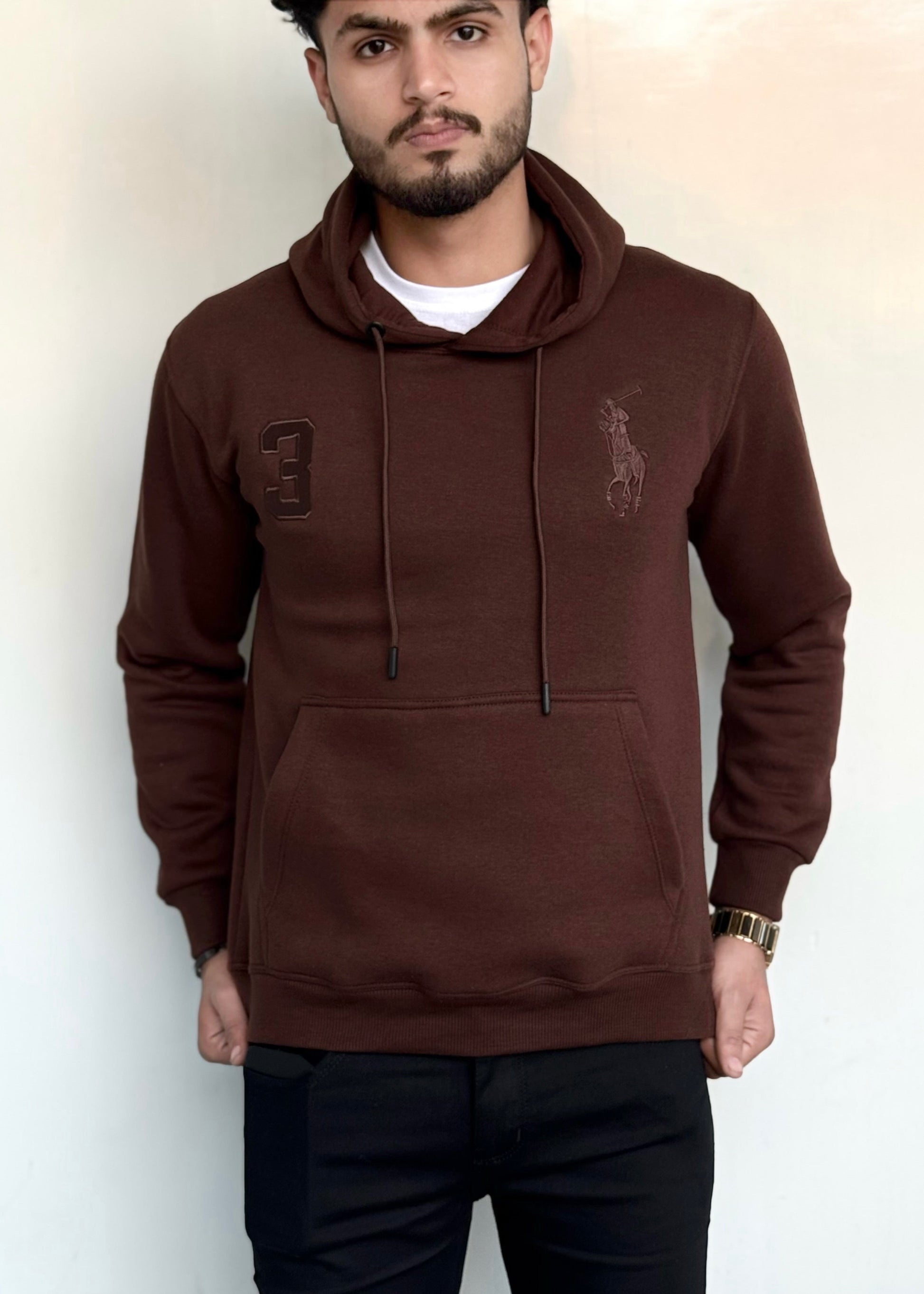 0.01 COZY CLASSIC FLEECE HOODIE-BROWN